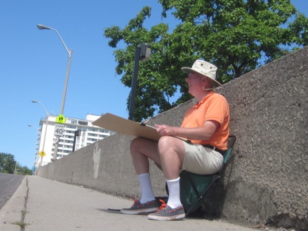 The only good sketching location is on Hunter Street that has a very narrow side-walk with lots of cars and people passing by. Got lots of positive comments from the people from the neighbourhood.