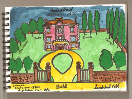 Peter Hamilton, related to George Hamilton, built a log cabin on the lands that would eventually become the Durand neighbourhood. In the 1830s, he replaced his cabin with a large brick house. The house was later sold and called Holmstead. The home was demolished in the 1930s.